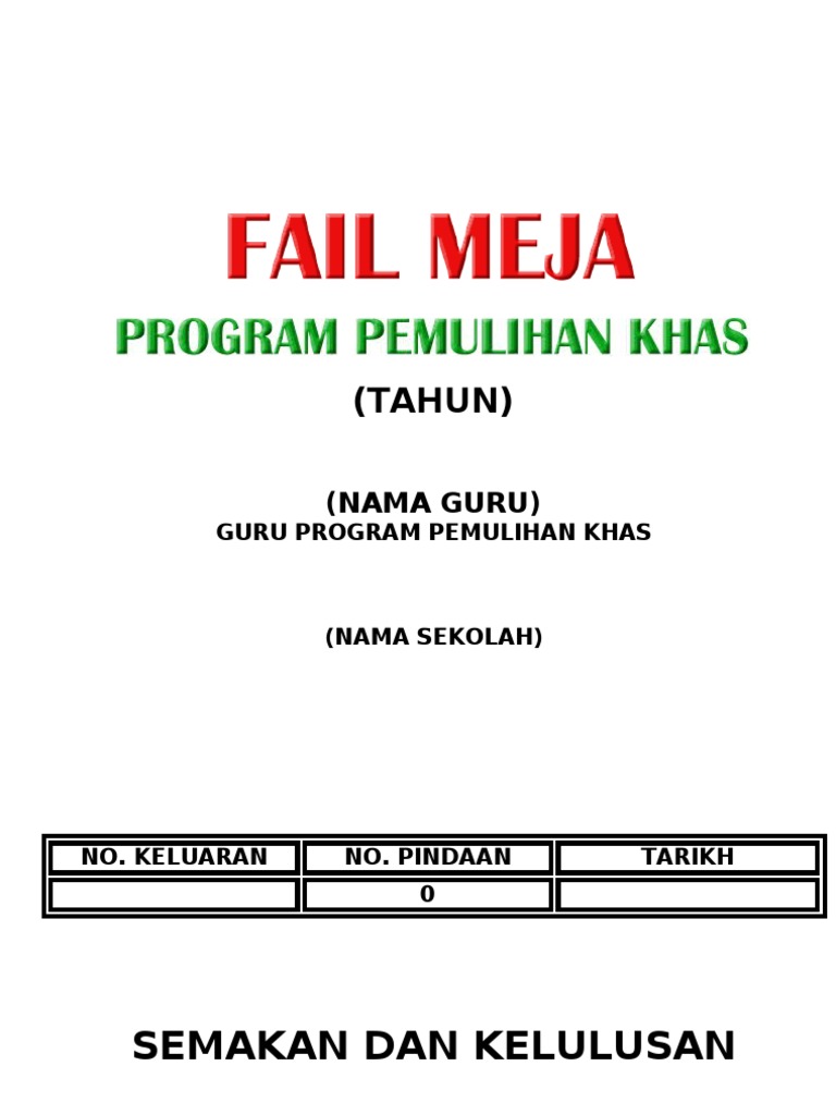 Fail Meja Pemulihan Khas(CONTOH) from imgv2-2-f.scribdassets.com H menyediakan rancangan mengajar tahunan/harian renda ah mengajar mengikut jadual yang ditetapkan sekol menyediakan. Menyenaraikan pusat pembelajaran yang pembelajaran yang perlu diwujudkan. Senarai tugas, kuasa dan hubungan dengan pegawai lain9.1 proses kerja guru pemulihan khas9.1.1 perlaksanaan program pemulihan khas9.1.2 membantu guru bm,m3/linus9.1.3 melaksanakan penilaian berterusan9.1.4 penyediaan. Orang (asumsi 1 kelas 32 siswa) dengan cara siswa mengambil nomor di meja guru. Bekerja sebagai team work 6 fail meja guru mata pelajaran 7. Fail meja (fm) merupakan satu dokumen rasmi yang perlu ada dalam sesebuah pejabat/ jabatan. Fail meja guru perpustakaan dan media smk dato' harun, 45500 tanjong karang, selangor darul ehsan. Ini berarti buku siswa untuk kelas 2 ini telah terjadi perubahan sebanyak dua kali.